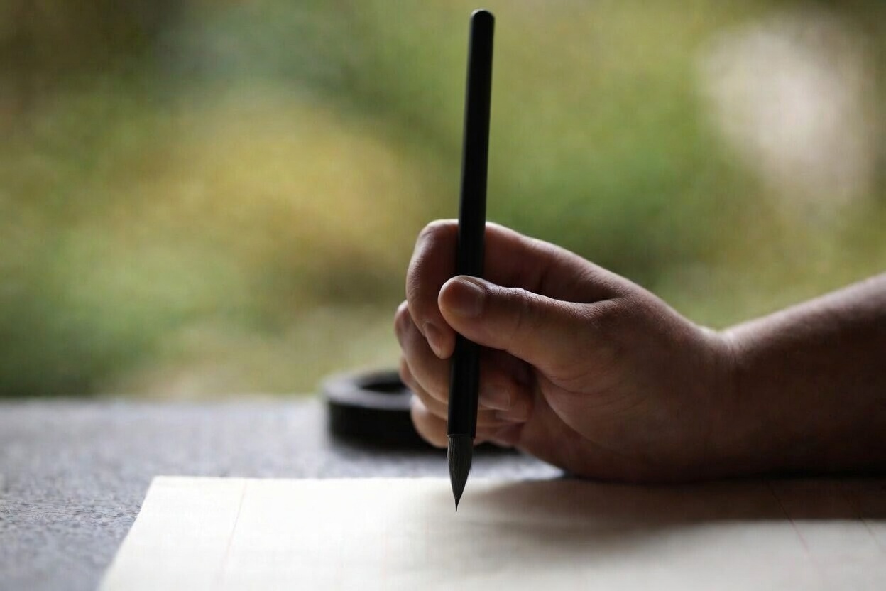 『正信偈』の文を書く際には、お手本の上に紙を乗せて、また筆ペンも用意しますので、初めての方でも安心です。